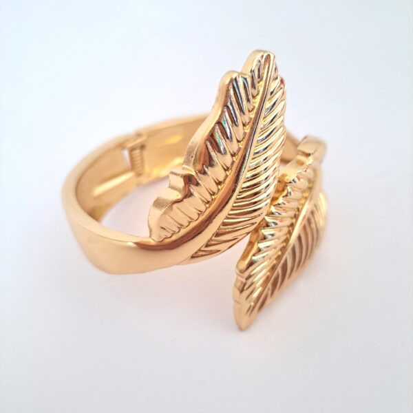 Hermoso brazalete dorado con diseño de hojas envolvente, ajustable, ideal para añadir a tus outfits.