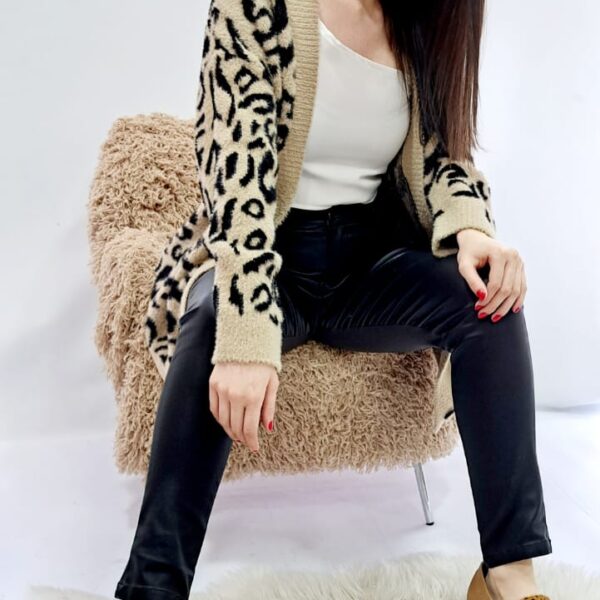 Hermoso Chaleco largo abierto, en lanilla gruesa animal print , es super suave y calientito por su lanilla peludita. Largo total 88 cm. Puedes usarlo abierto o cerrado, ya que trae botones grandes.