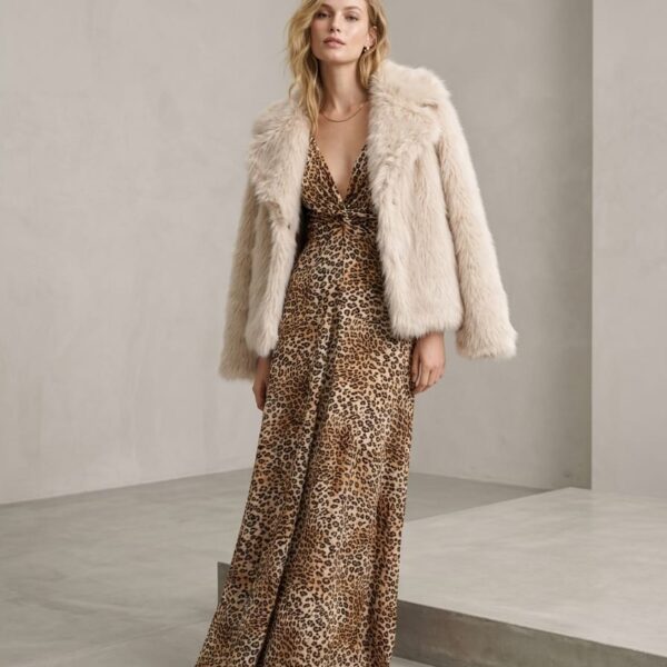 Hermosa Chaqueta de Piel sintetica gruesa en color beige. Tiene Cuello solapa grande, broches y bolsillos, que haran que tu look sea abrigador y glamuroso.