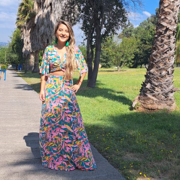 Hermoso conjunto en estampado tropical, Crop top envolvente y falda gitana , forman un Match perfecto . Bello y colorido estampado, tela full elasticada que se adapta, con excelente calce .