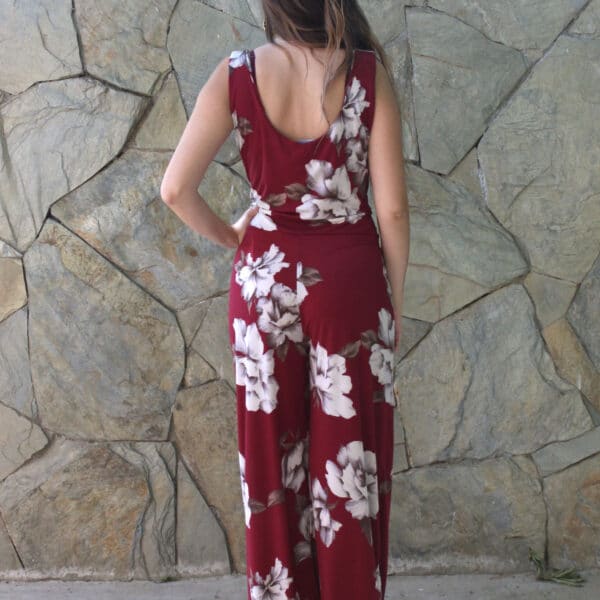 en lycra fria burdeo con flores