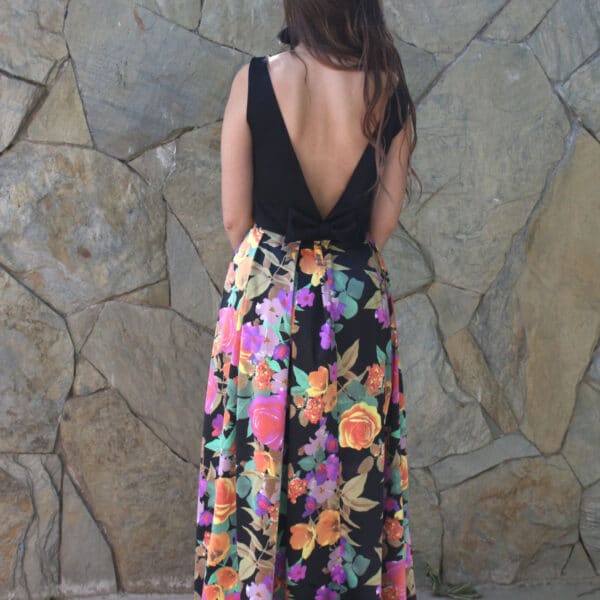 Faldon flores negro con bolsillos