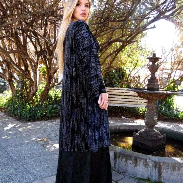 Hermoso Kimono de terciopelo negro, con brillos plata, se ve hermoso en movimiento. Exclusivo NOM