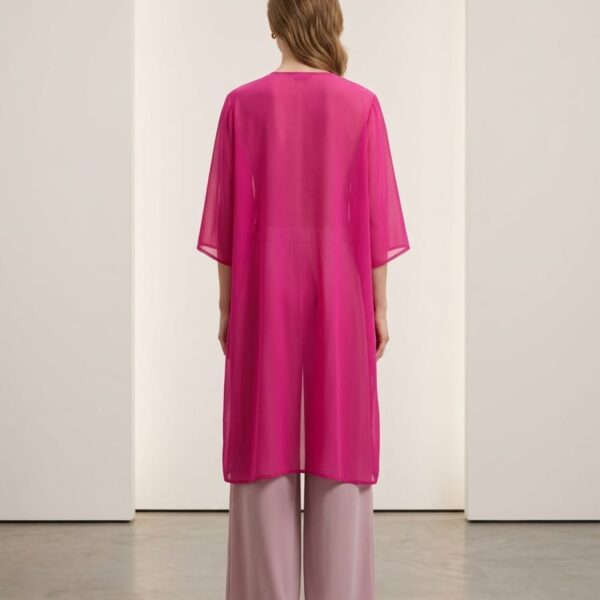 Hermoso y Elegante maxi kimono en tela gazza tono fuscia con magas 3/4 holgadas, diseño exclusivo de la tienda.