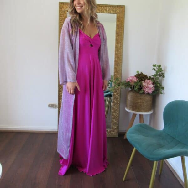 Hermoso Kimono lila, su textil es translucido con bellos brillos. Perfecto para complementar cualquier oufits.