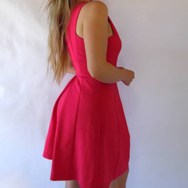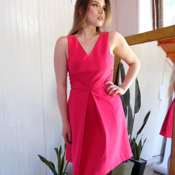 Mini Vestido con cortes y pinzas en color fucsia fuerte.