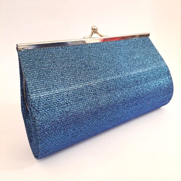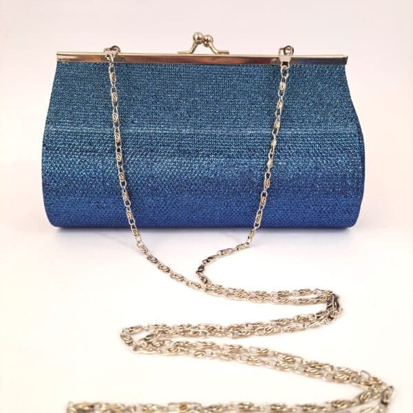 Hermoso sobre de fiesta azul brillante con cadena que puedes poner y sacar según tu elección.