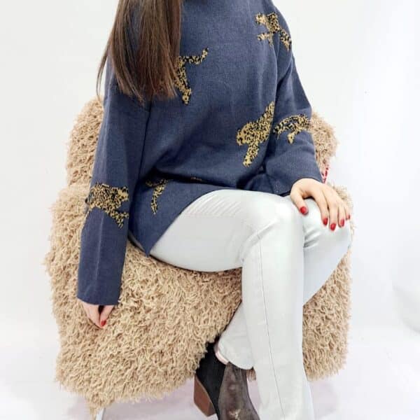 Hermoso Tejido Gris oscuro , con estampado de tigre. Lanilla Suave exquisita, abertura en costado. Cuello alto, cómodo y ondero. Largo total 75 cm ..hermoso! Disponible también en fucsia.