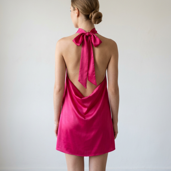 Hermoso vestido diseño halter con escote pronunciada en la esplada con lazo en el cuello para su amarre en tono rojo, diseño exclusivo de nuestra tienda.