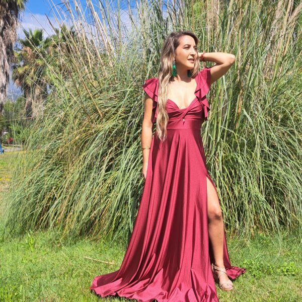 Hermoso vestido color turquesa intenso, tiene un escote cruzado que potencia tu busto, con un calce perfecto, por su exquisita tela Lycra Dupont. Abertura en la pierna que te da un aire sexy y juvenil . Mangas con vuelo doble , es un vestido bello y muy sentador.