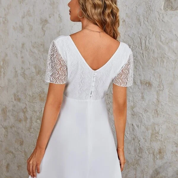 Hermoso Vestido , con encaje , escote en V y manguitas en su parte superior , su falda es evasse de Crep con una linda caída , muy sentador